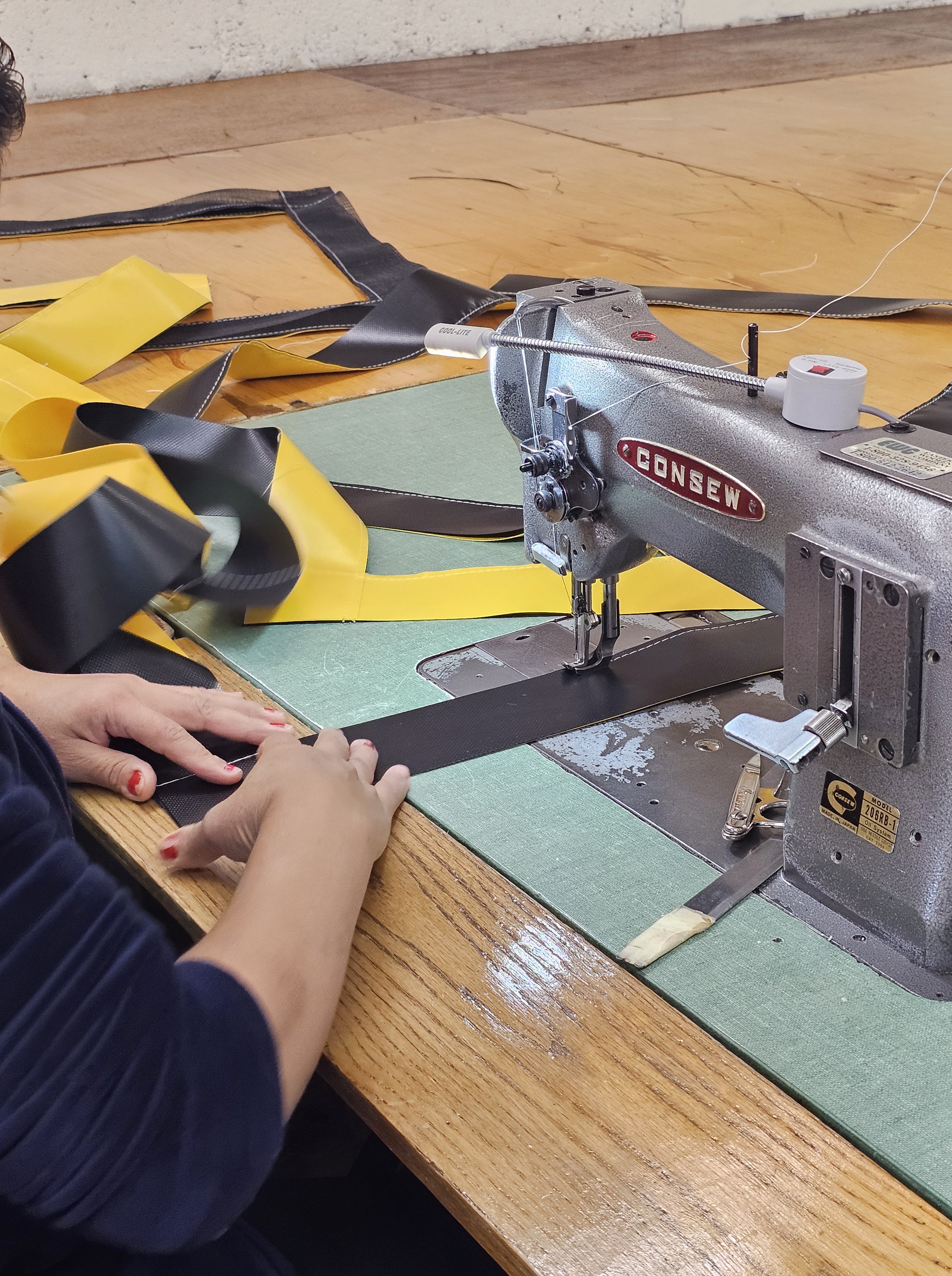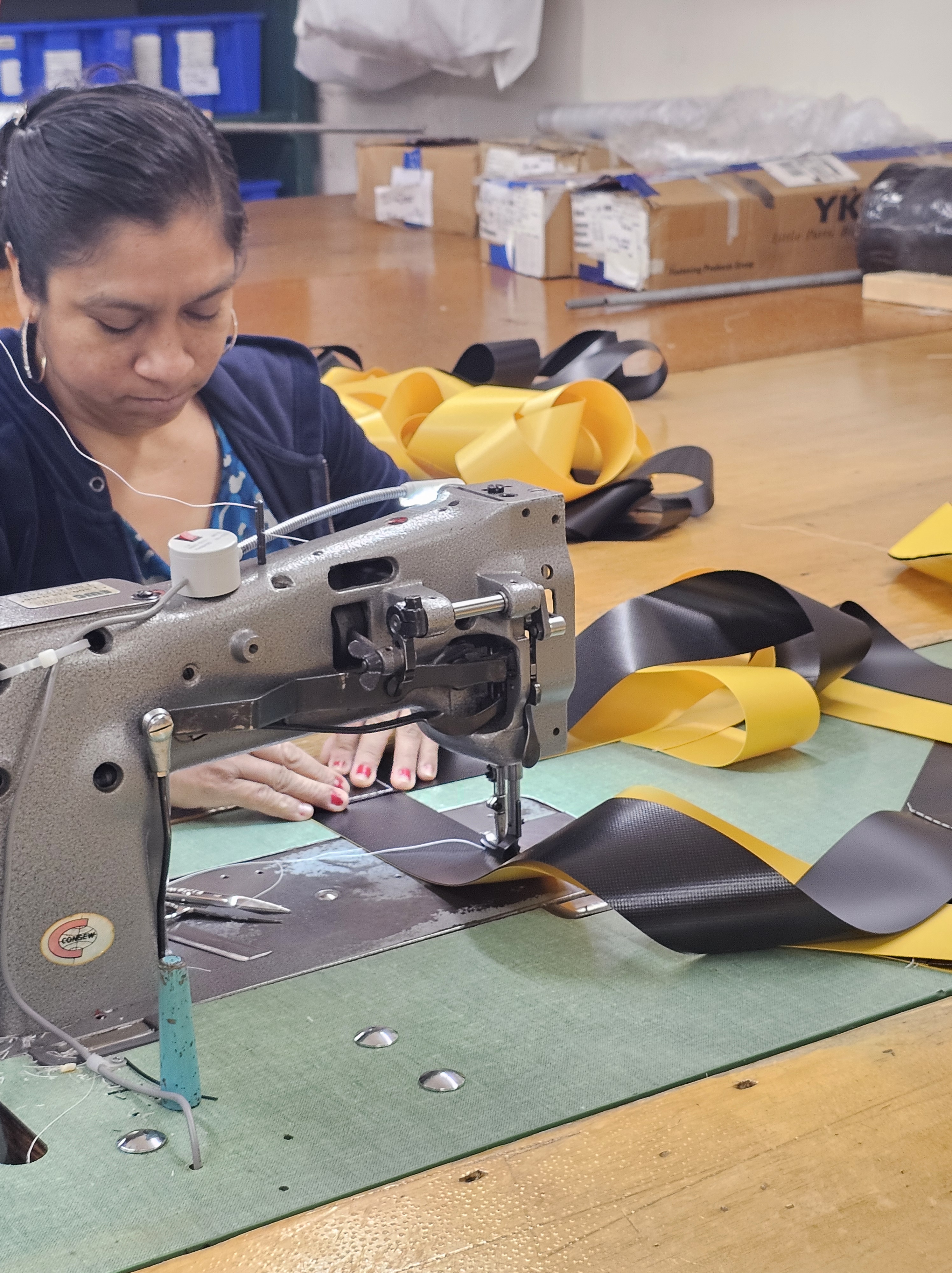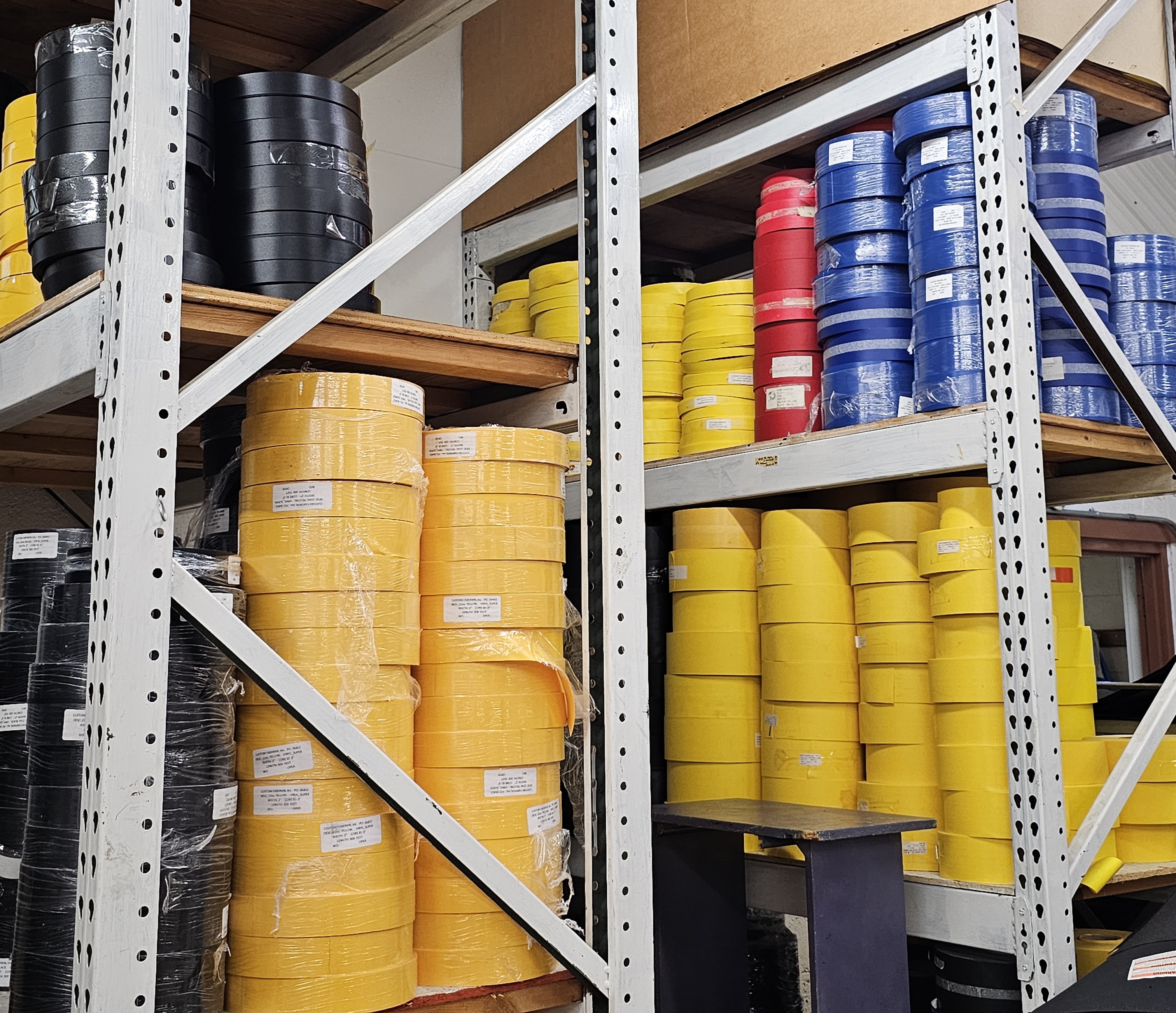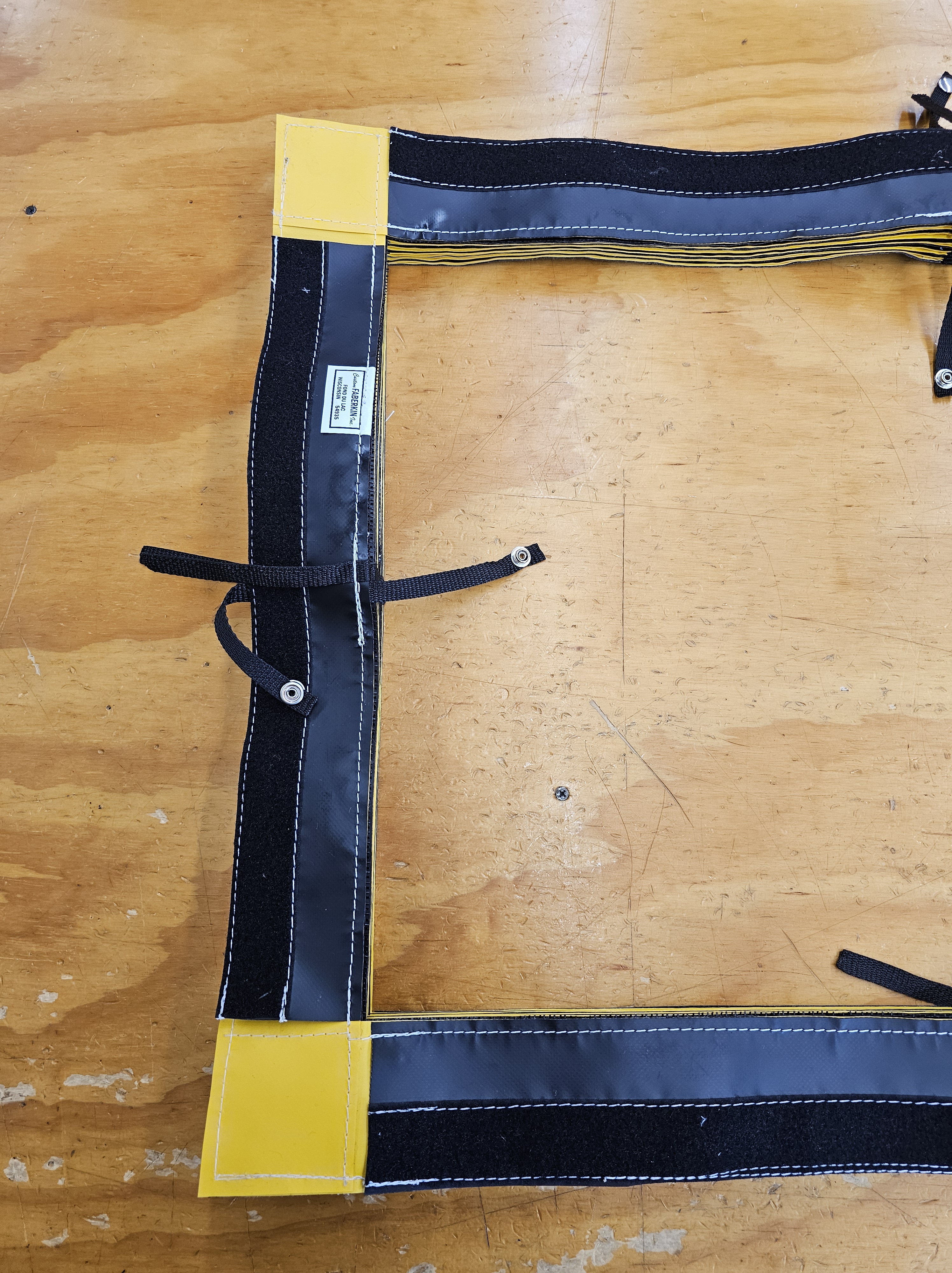 Stitched with care and precision. Our Table Guards are made with 22oz coated vinyl. Typically in alternating yellow and black folds. We also offer White, Orange, and high temperature fabric for welding and cutting environments.