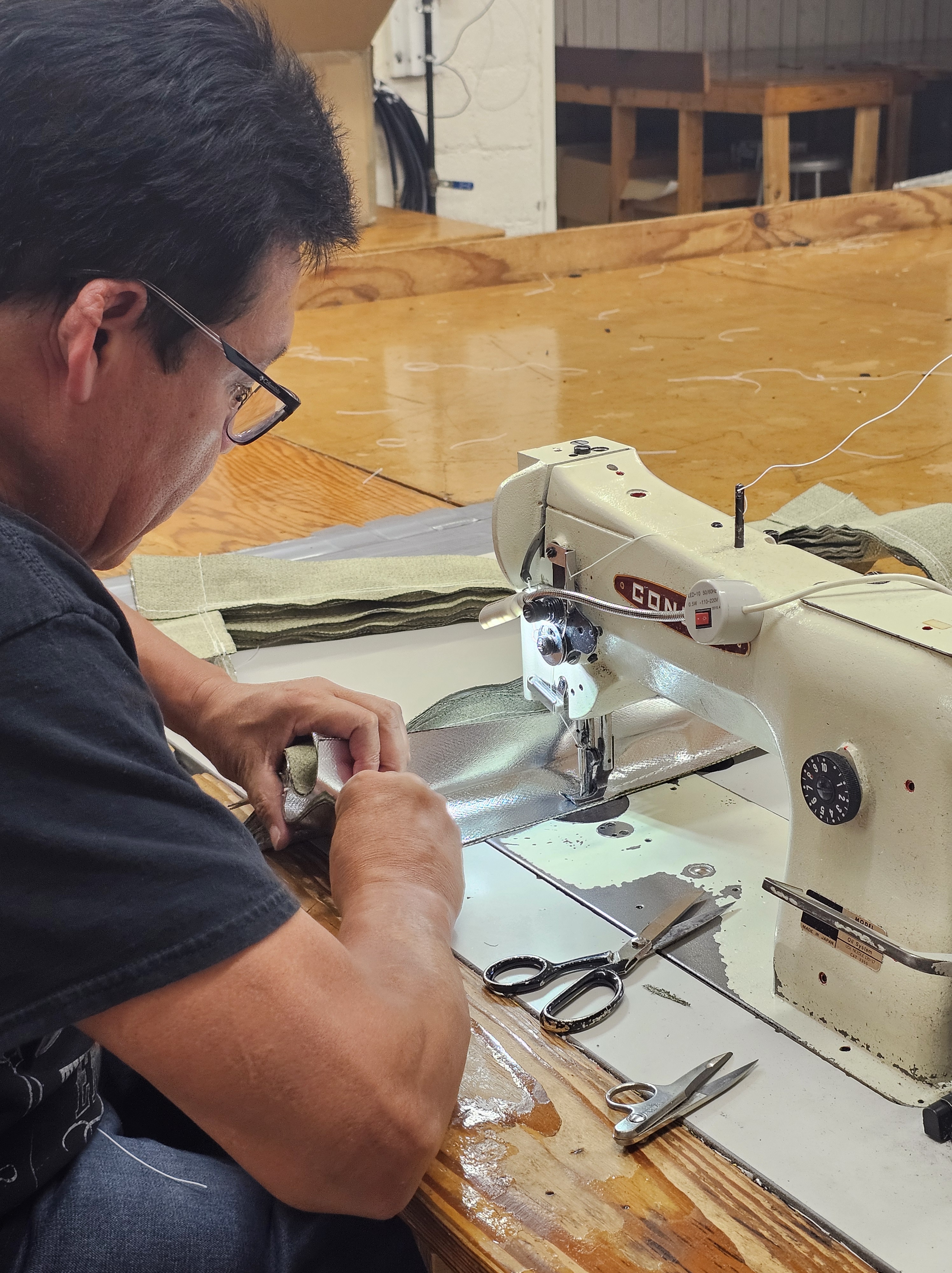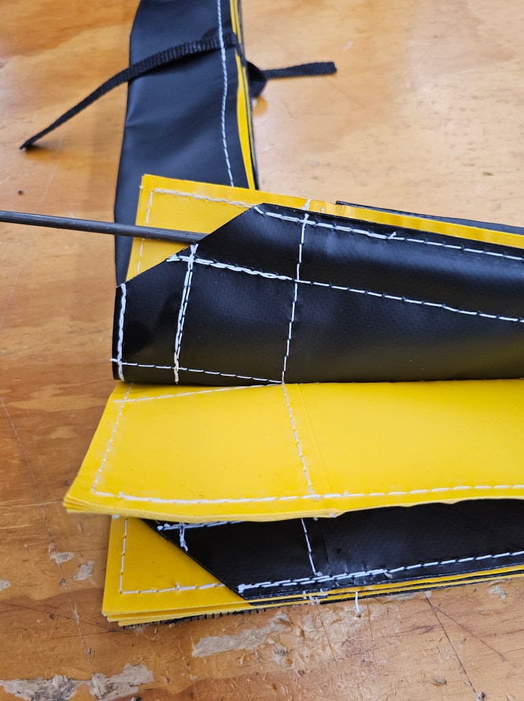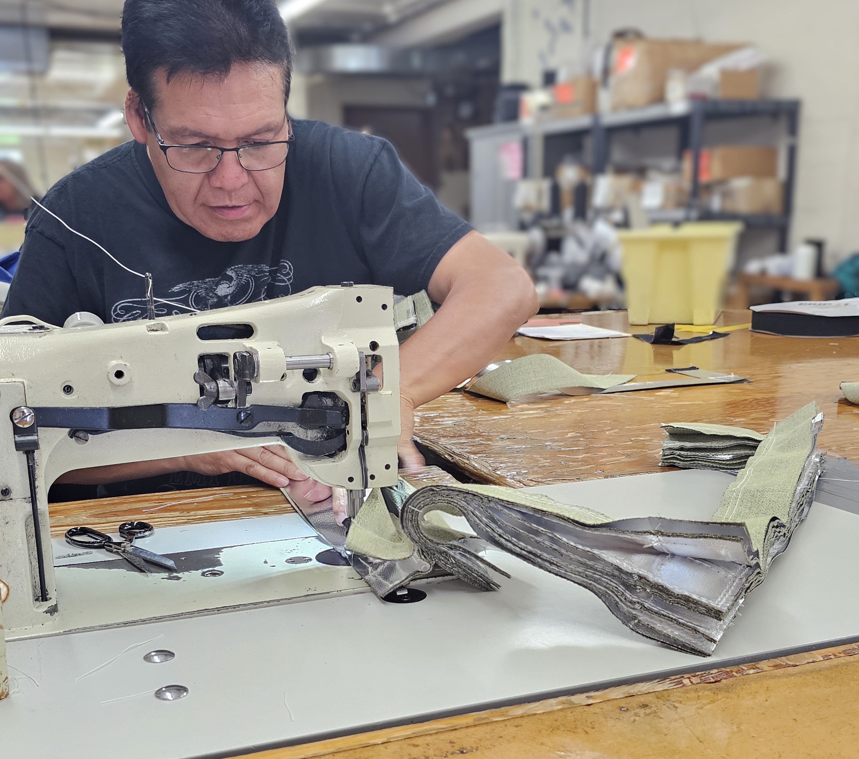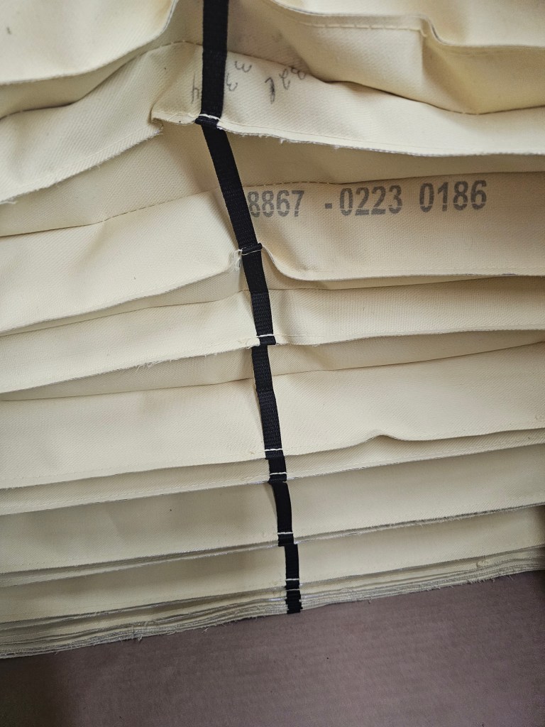 Stitched with care and precision. Our Table Guards are made with 22oz coated vinyl. Typically in alternating yellow and black folds. We also offer White, Orange, and high temperature fabric for welding and cutting environments.