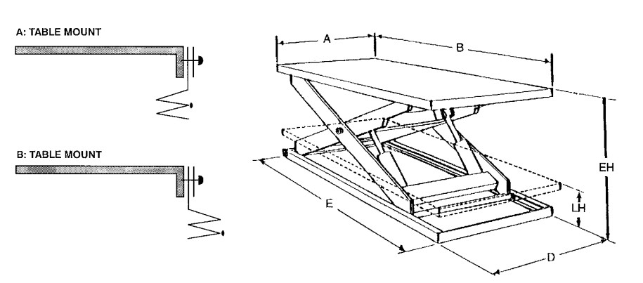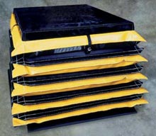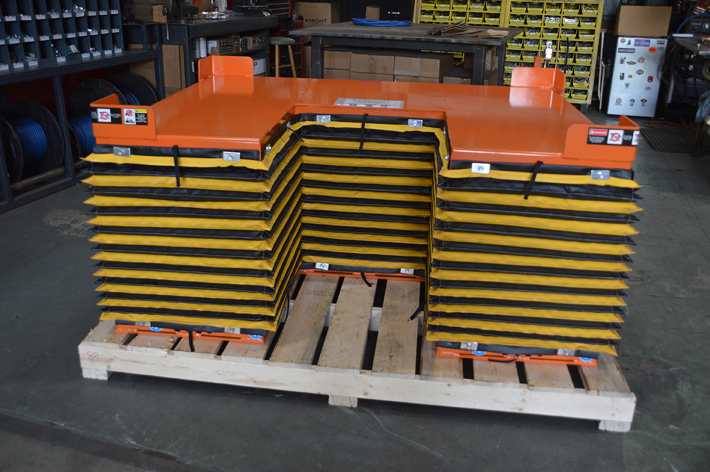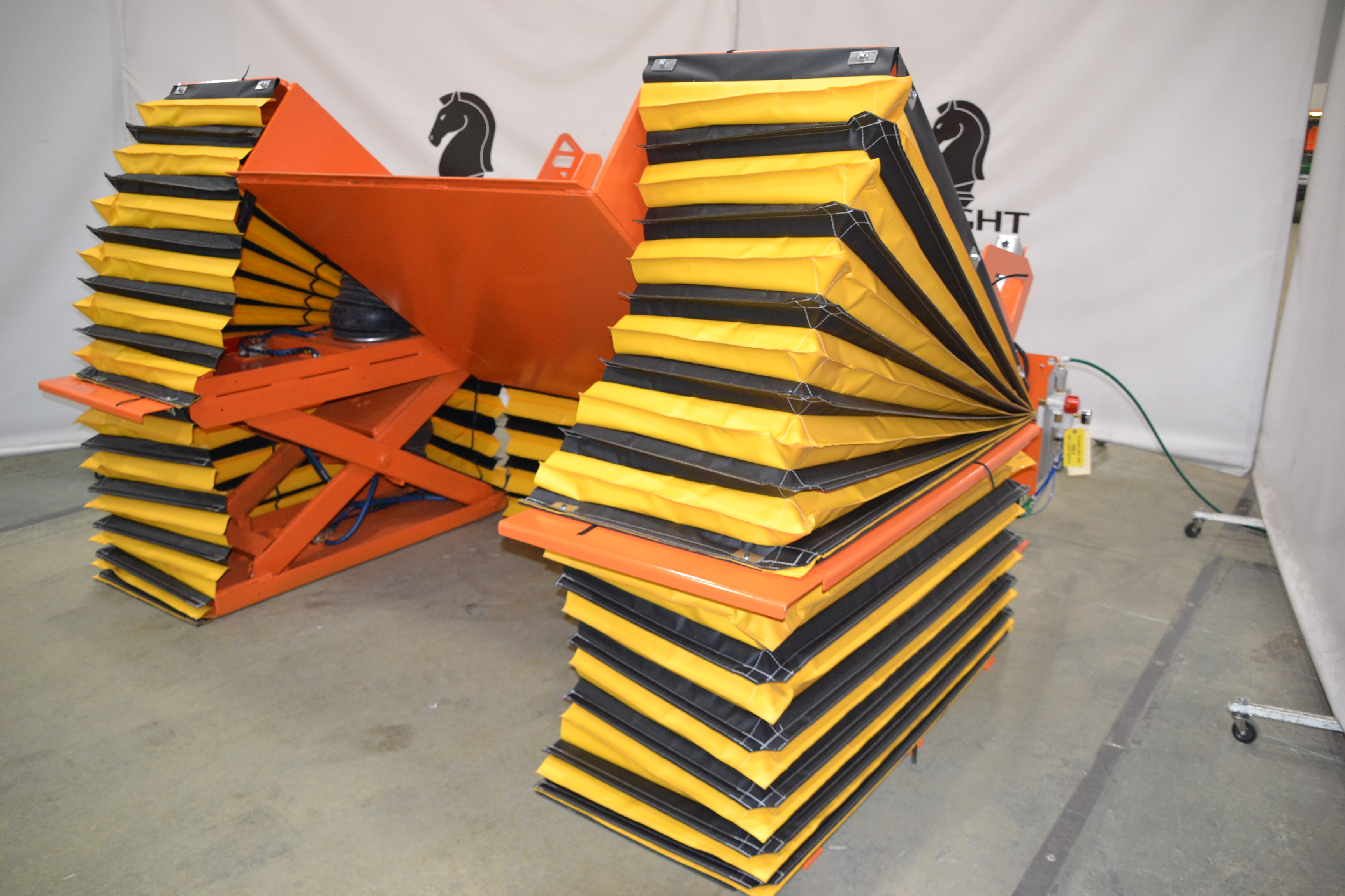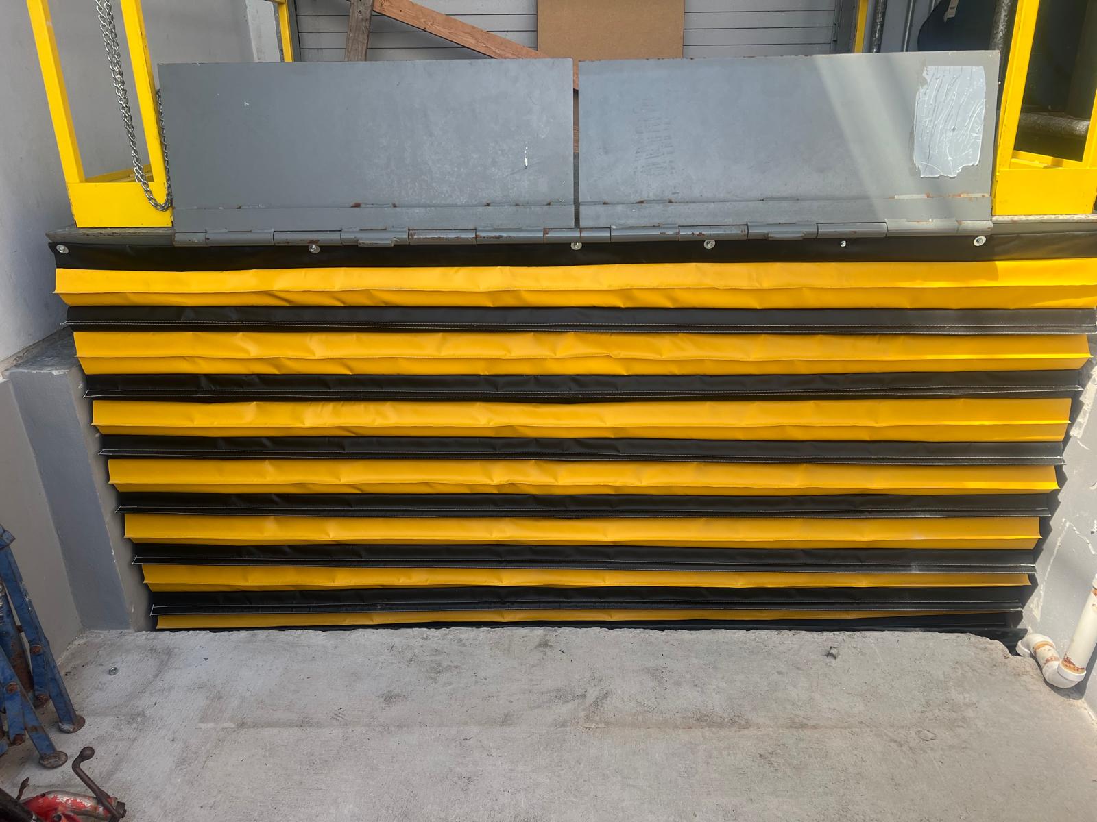 Accordion Style Safety Skirting for Scissor Lift Tables. also known as Safety Curtains, or Lift Table Bellows. Skirts for Conveyor Systems, Custom or Standard tables. Also made for dock levelers as dock leveler skirt. No matter the name brand of the table or the age, we can make your safety skirting!