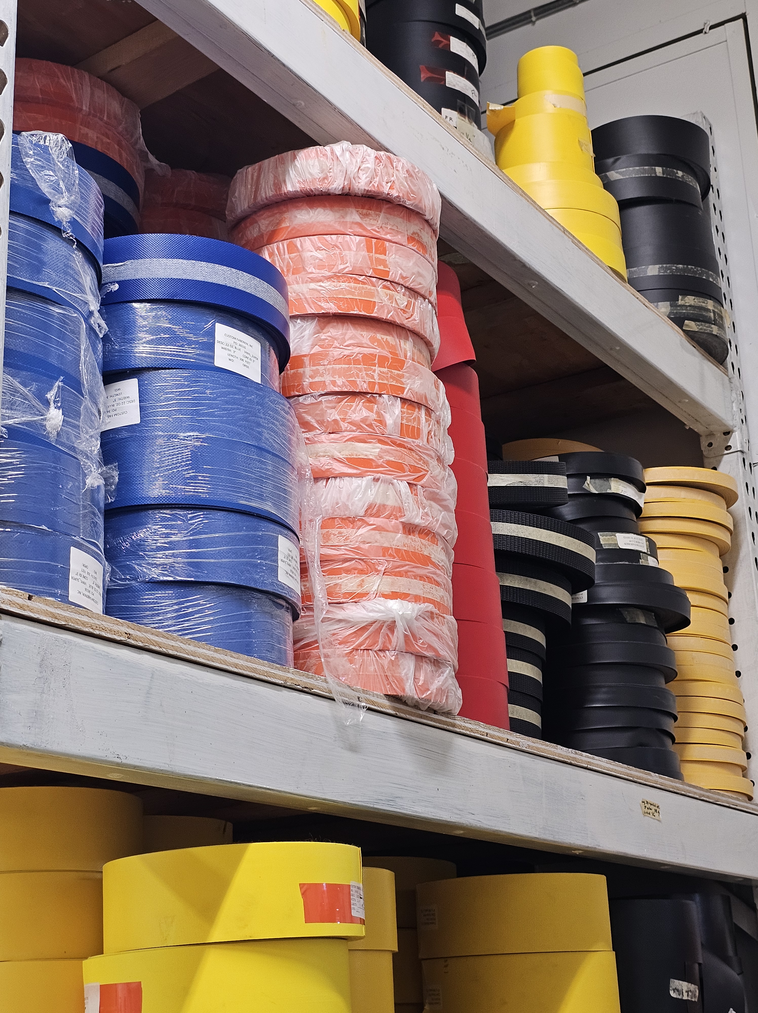 Made with galvanized spring-steel non-locking rollers and strong 22oz coated vinyl. Multiple colors of vinyl available and other material options as needed for the application.