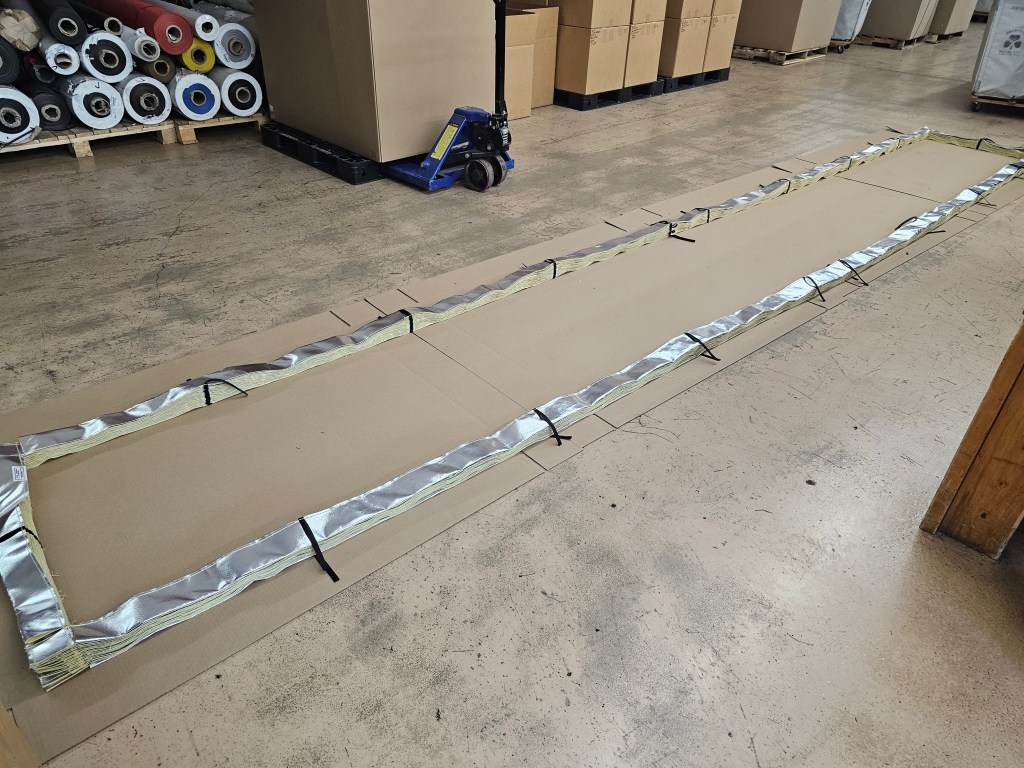 For your high-heat applications we offer 1091 Aluminized Kevlar custom skirting. Perfect for situations where a standard vinyl just won’t hold up to the heat!