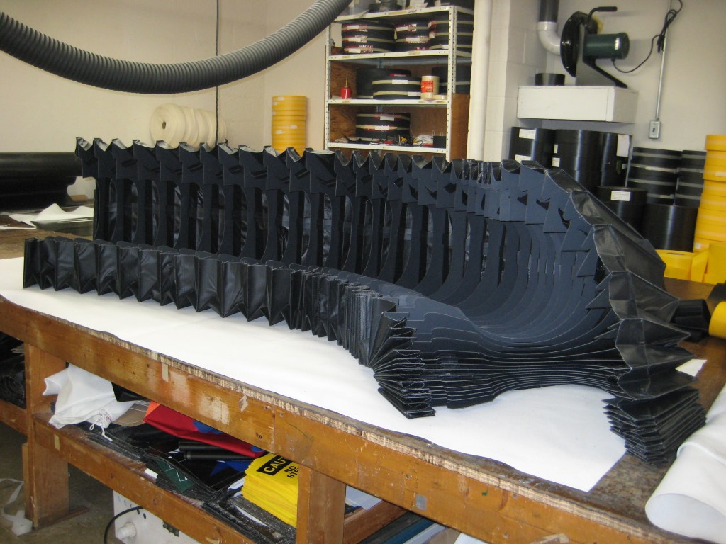 Guards for ways, shafts, screw shafts, cross-rails, cylinder rods, and more. Our guards can be fabricated from a variety of materials specifically suited to each individual application. Bellows are sewn, and outfitted with a cuff, or flanges at the ends to fit your installation need.