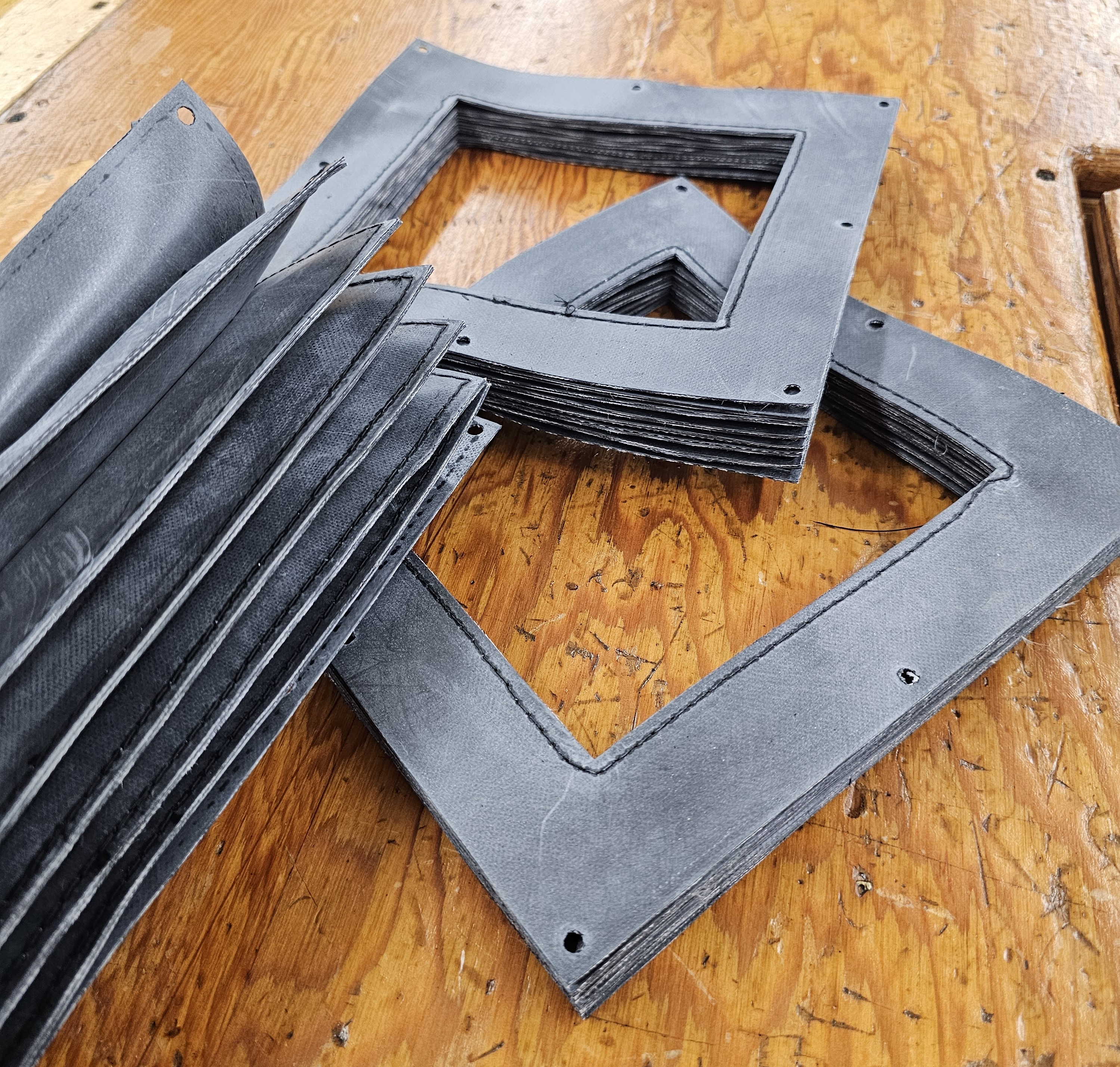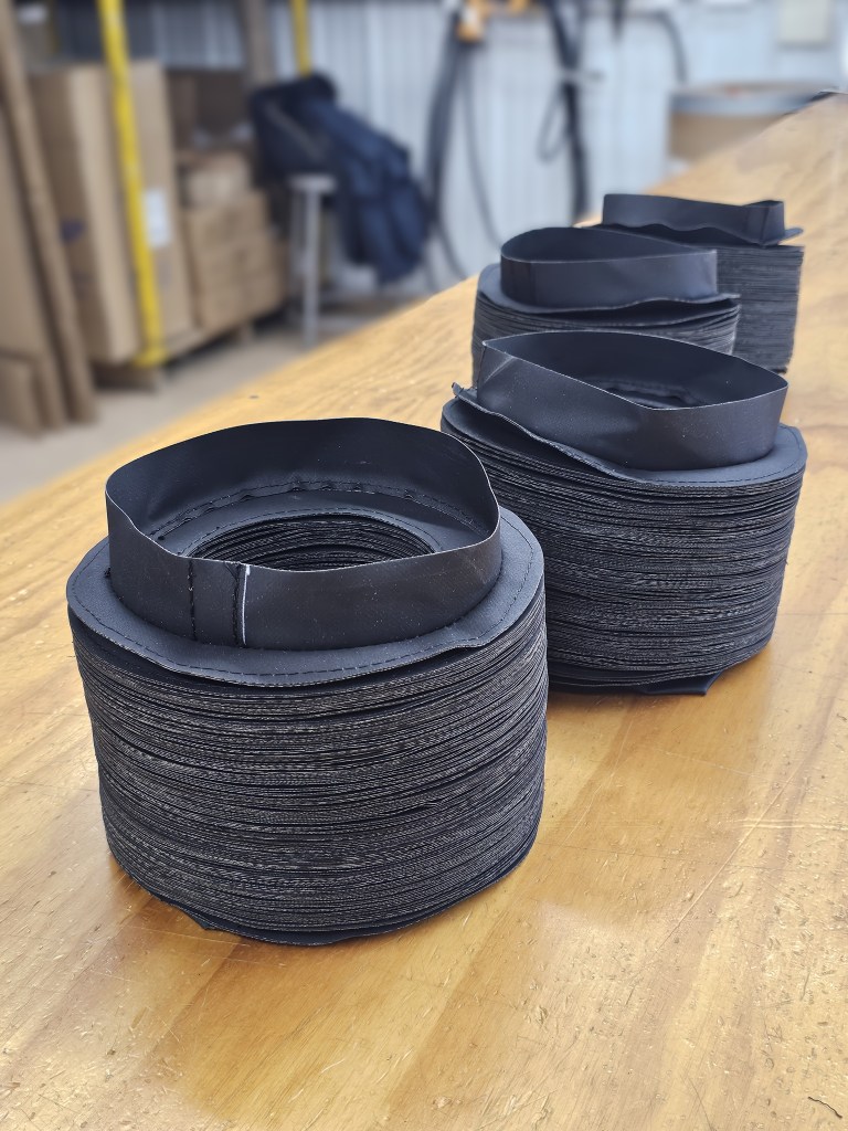 Custom Faberkin stocks a wide variety of material options. Materials are available to withstand temperature ranges of -100° F to over 1000° F, without deterioration. Fabrics also have resistances to different acids, phosphates, abrasion, oils and more. Let us know your work environment, and we can guide to an option to meet your requirements.