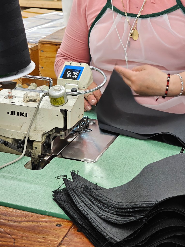 Once your product’s design is finalized and approved by you, our team will release it to the production floor. This means raw material will need to be cut, before the project can be sewn.
