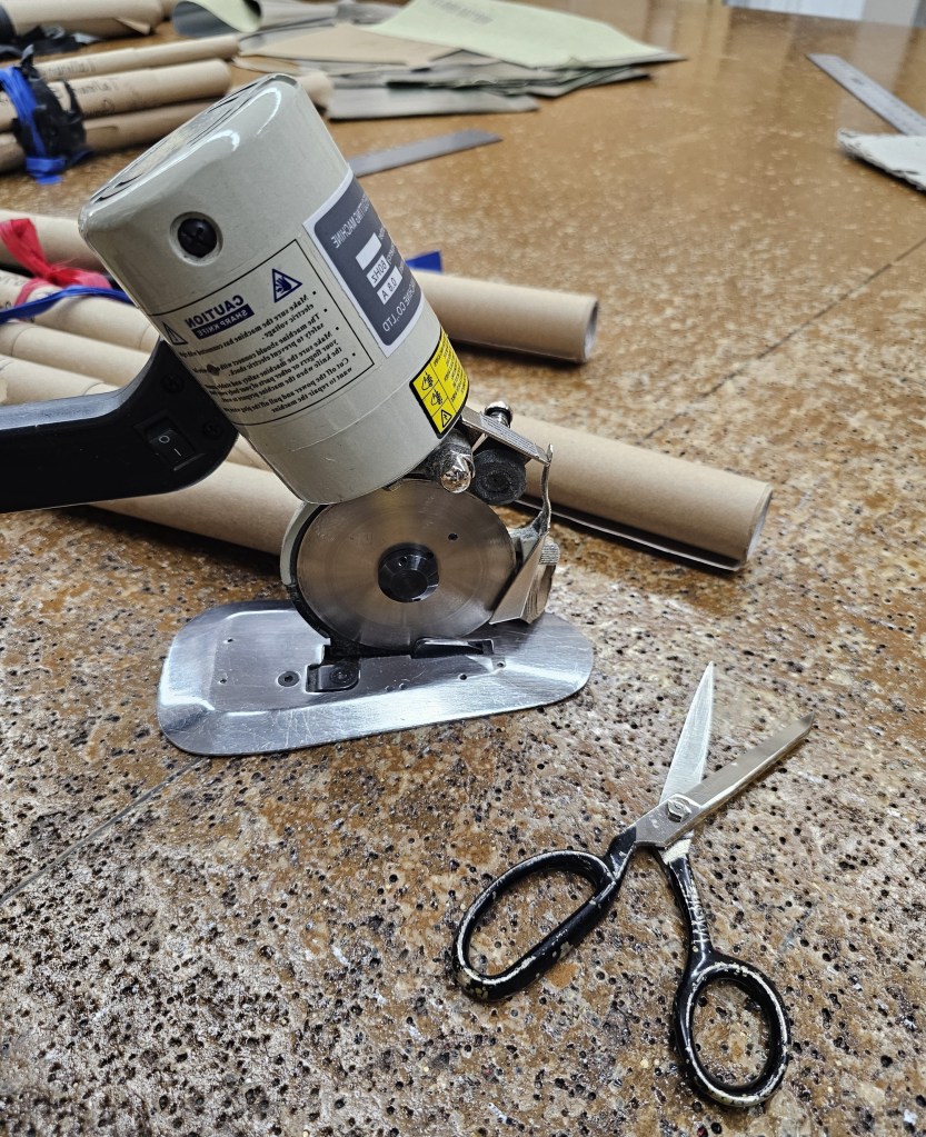 A skiving machine is a specialized tool used to bevel or thin the edges of leather and other materials. It features a rotating blade that can be adjusted to achieve the desired thickness reduction. Skiving is commonly used in leatherworking, and other projects that require precise edge finishing.