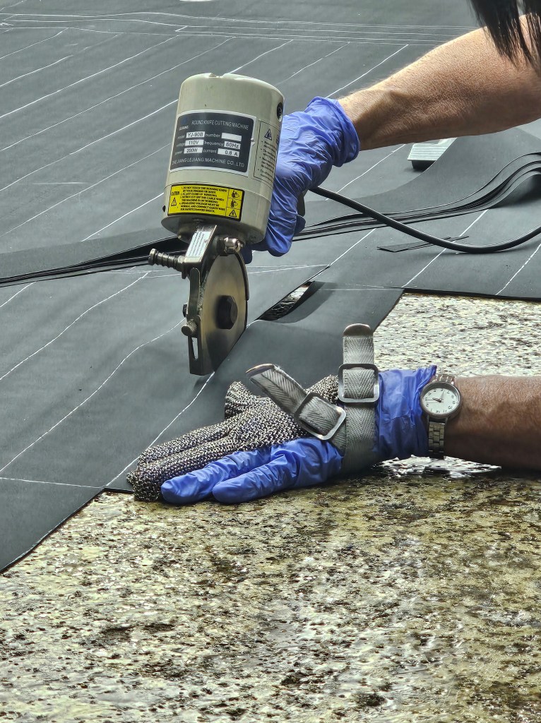 Die Cutting is a process used to cut materials into a specific shape using a hardened steel die. Commonly cutting various Rubber coated and Hypalon coated material for bellows. Also used for cutting PVC plastics, Foams, cardboard, and other fabrics for a consistent cut. Using this process, we ensure the repeatable shape for your project.
